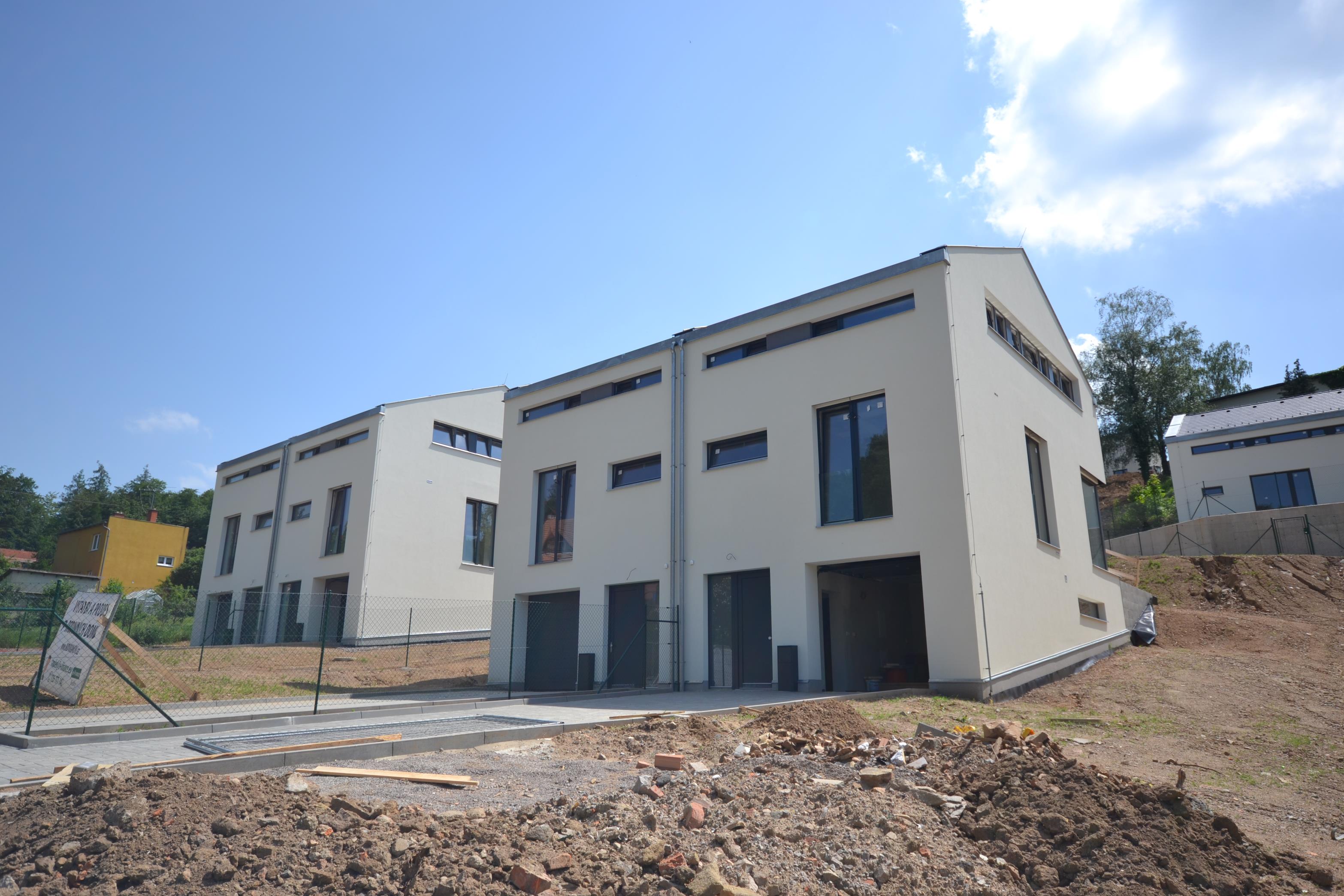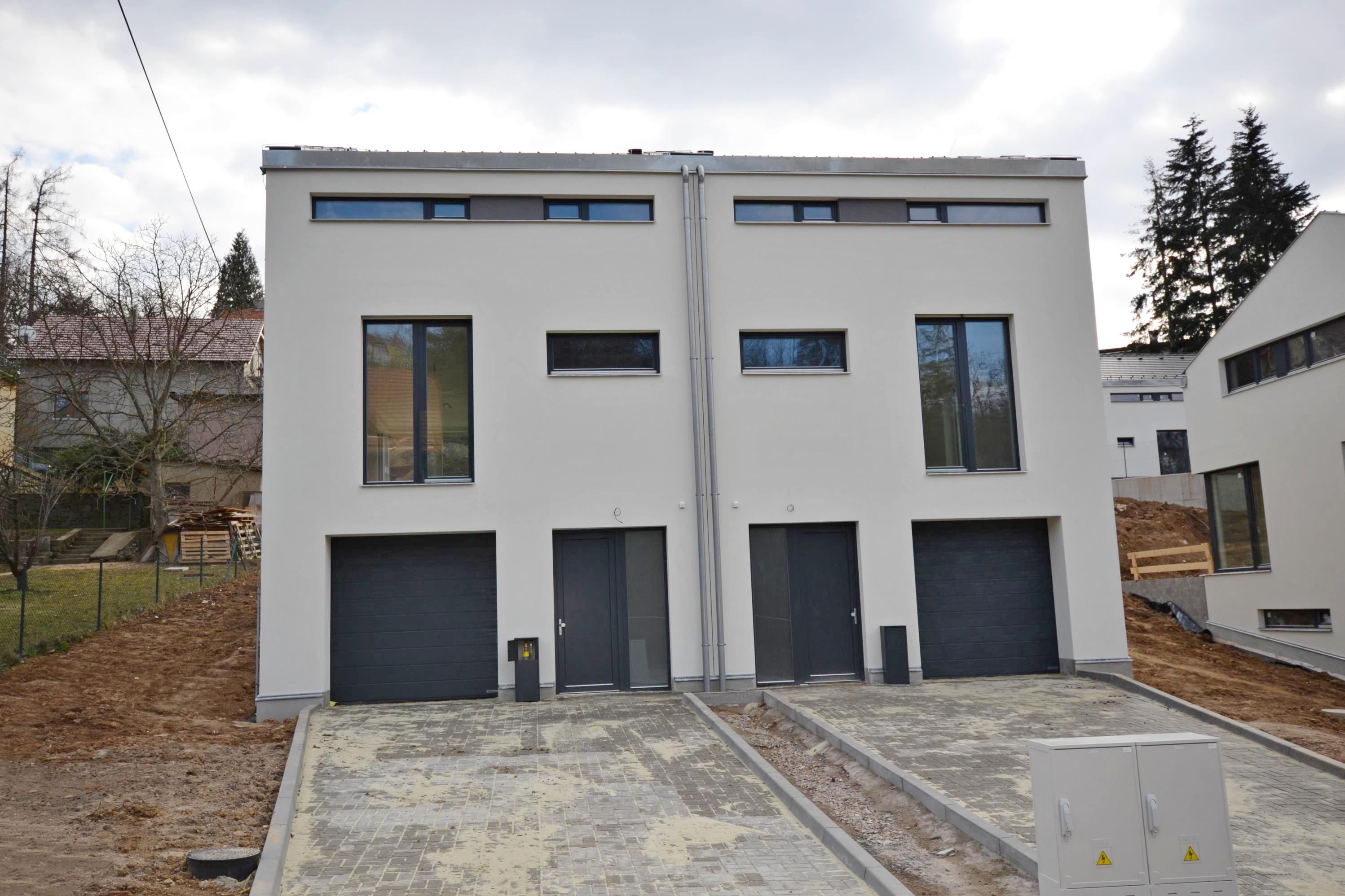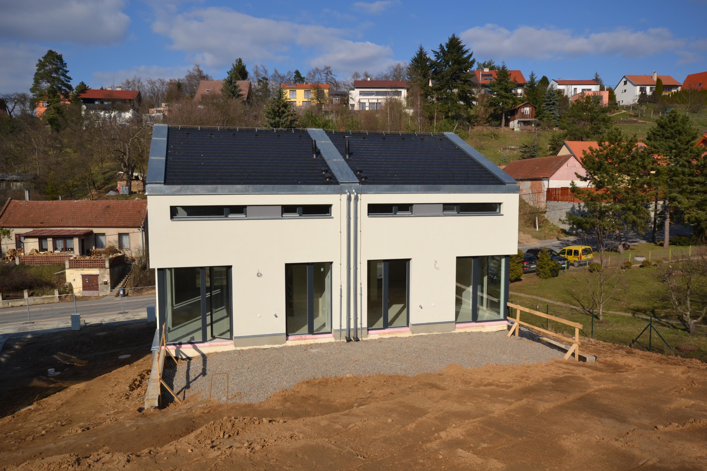 Novostavba rodinného domu A4, koncipovaného jako polovina dvojdomu. Cena je uvedena za dům s pozemkem ve stadiu kolaudace, celková výměra 512 m2.