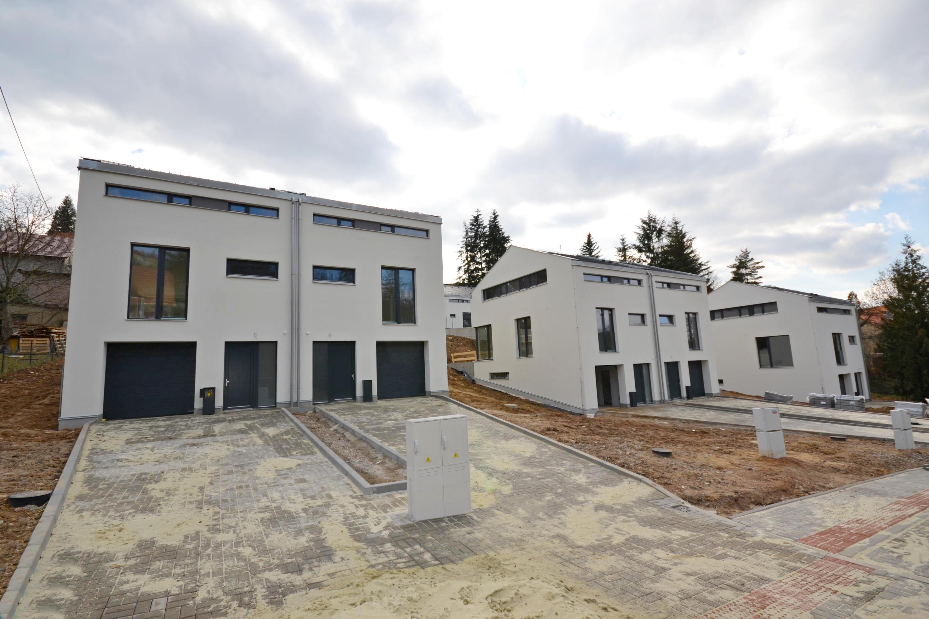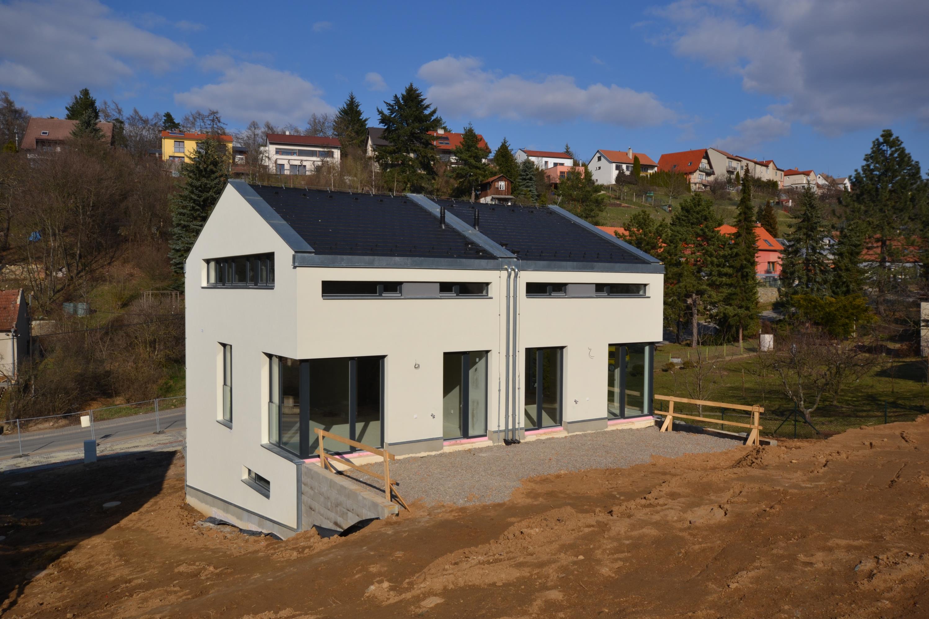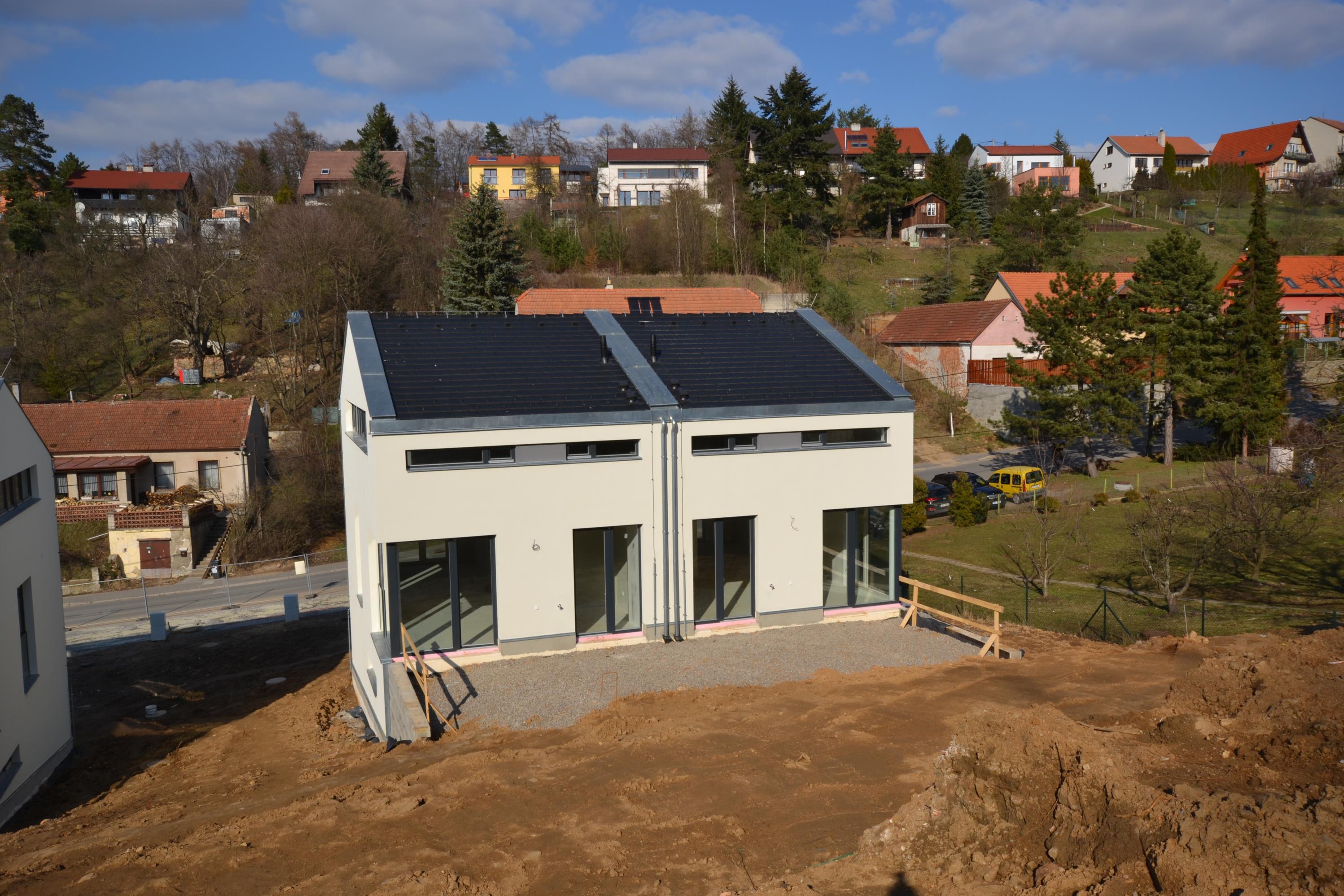 Novostavba rodinného domu A4, koncipovaného jako polovina dvojdomu. Cena je uvedena za dům s pozemkem ve stadiu kolaudace, celková výměra 512 m2.